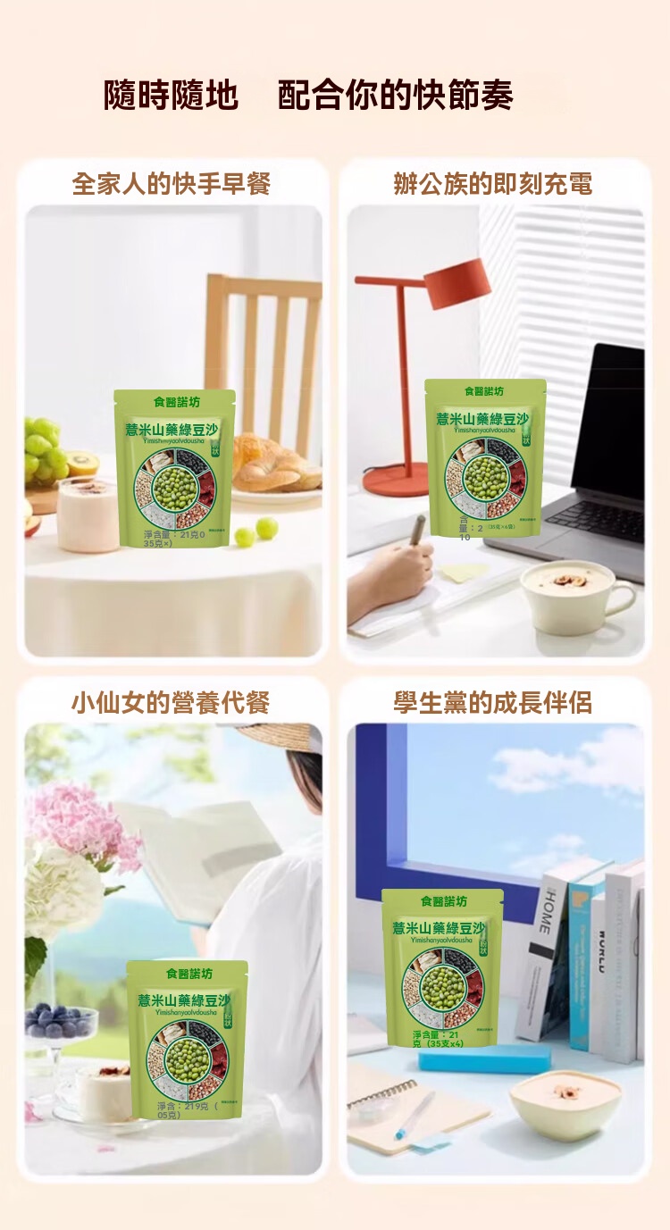2分鐘前養生精選!薏米山藥綠豆沙 - 維生素滿點,清爽滋補甜品 - 【買四送二】養顏輕體套餐-共六袋NT$1298
