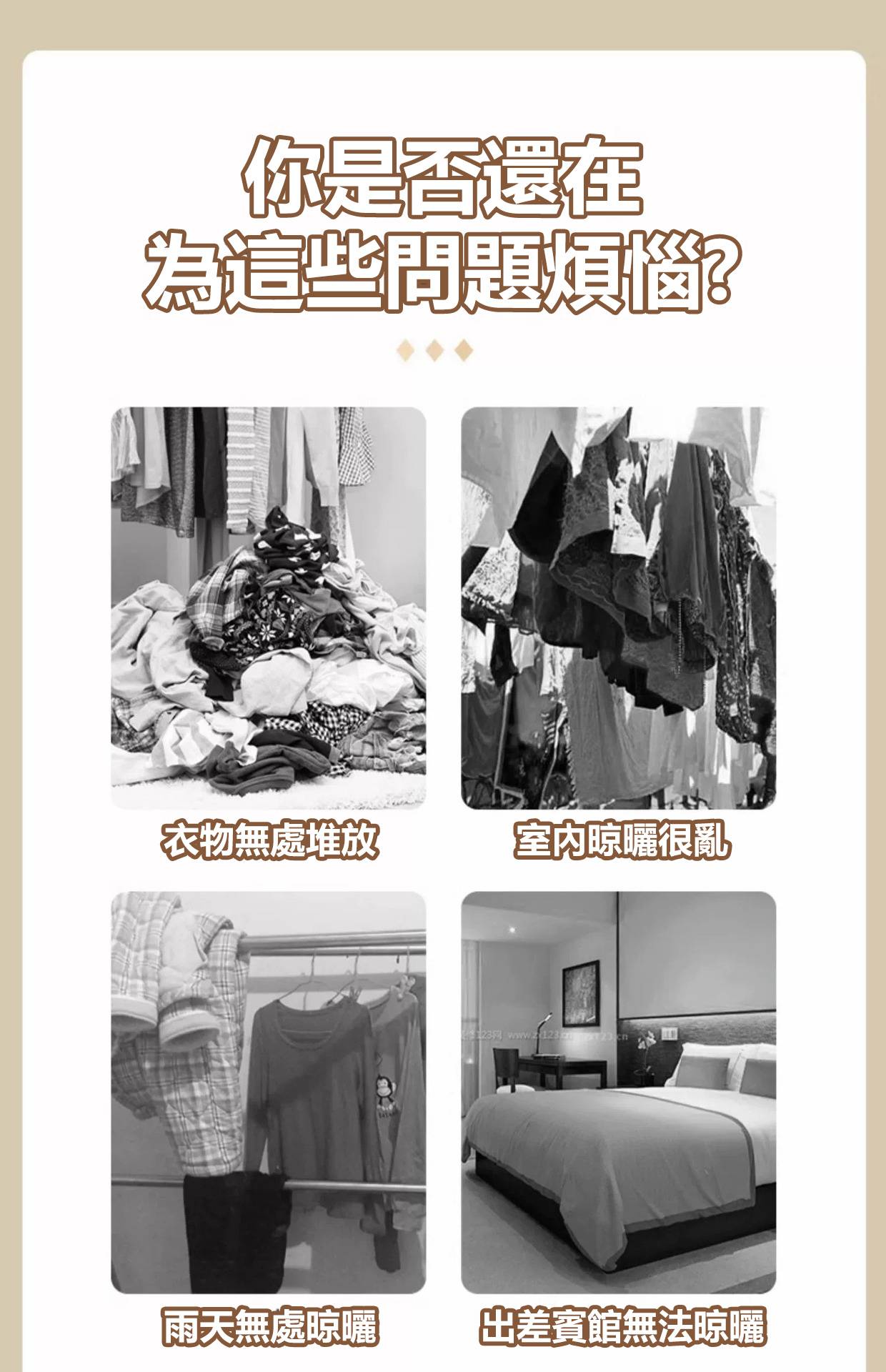 4分鐘前 【多功能折疊晾衣架】 便攜旅遊酒店晾曬掛架 出差必備晾衣神器! - 【破盤嗨購】買三送九 12入組NT$1398