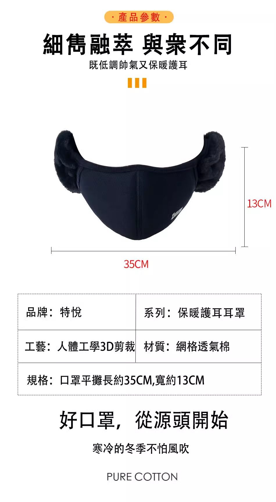 12分鐘前日本進口!台灣本地發貨!【男女同款】秋冬季高颜值纯棉加绒透气防寒防风护耳二合一面罩 - 體驗裝【買一送二】3入組NT$940(均價313/組)
