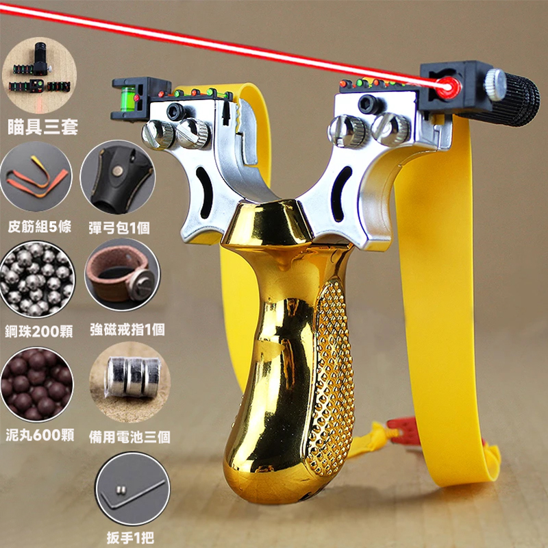 半小時前【百發百中彈弓】激光瞄準,水平矯正,刻度瞄準,50米內百發白中,全鋼材料,升級版,大號皮筋,庫存預警,先購先得 - 彈弓金色